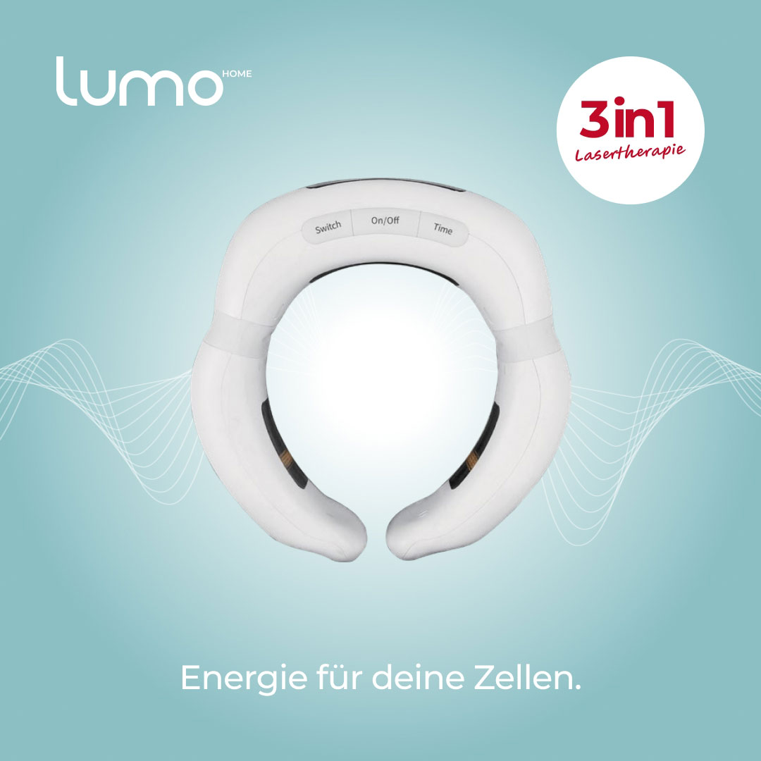 Mehr Ruhe, mehr Gleichgewicht, mehr Lebensqualität. LumoHome bringt die Kraft der mobilen Lasertherapie direkt zu Ihnen nach Hause – sicher, effektiv und wohltuend.
